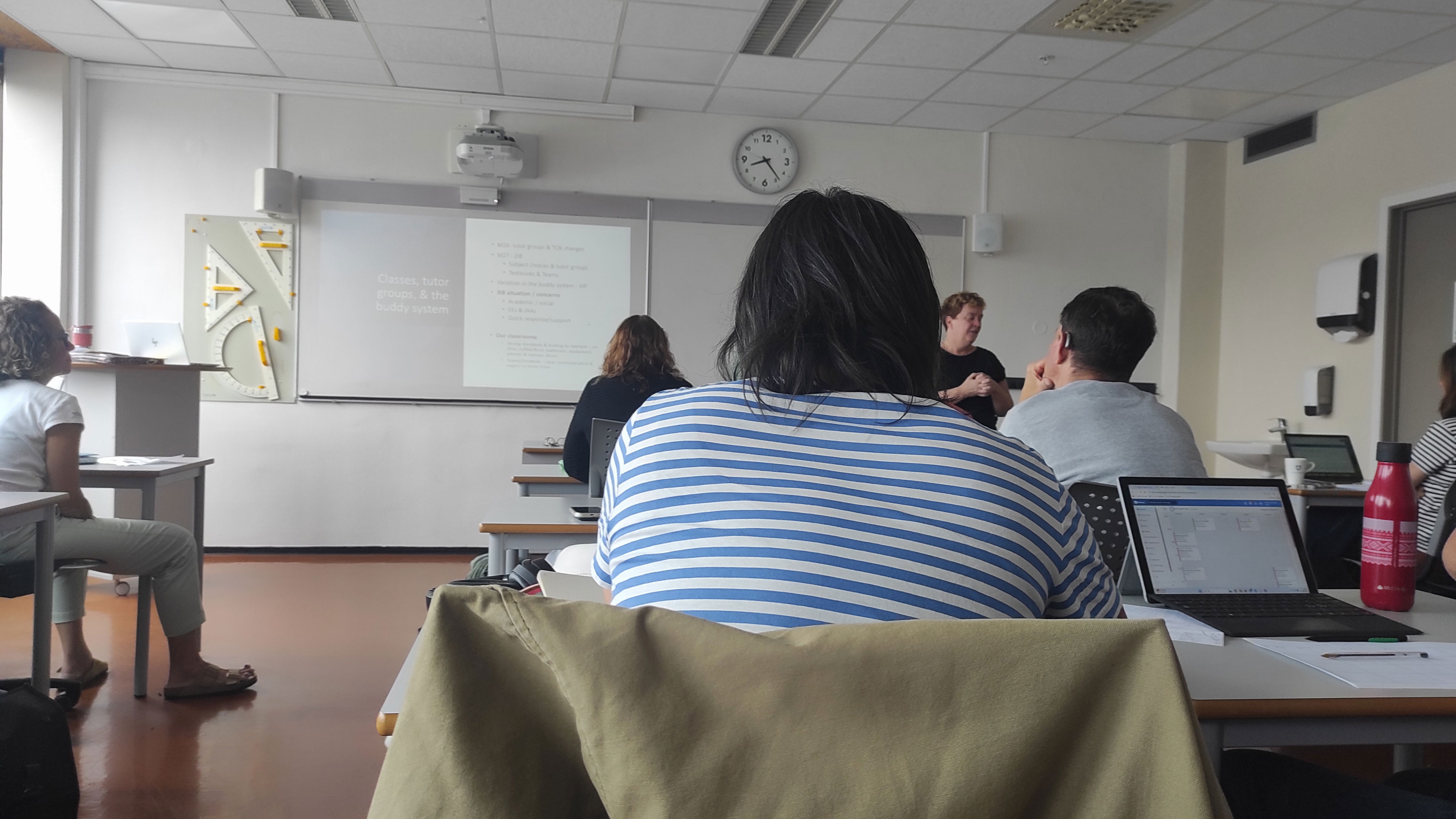 Desde el primer día, me sorprendió la meticulosidad con la que planifican el inicio del curso escolar. Aunque todavía quedaban unos días para iniciar oficialmente el curso escolar, el profesorado ya estaba inmerso en reuniones, diseño de proyectos y preparación de aulas, mostrando un enfoque muy colaborativo basado en la confianza mutua. Tuve la oportunidad de asistir a algunas clases de bachillerato y observar cómo el alumnado participa de forma activa en su aprendizaje, con un clima de aula tranquilo, respetuoso y muy centrado en la autonomía personal.